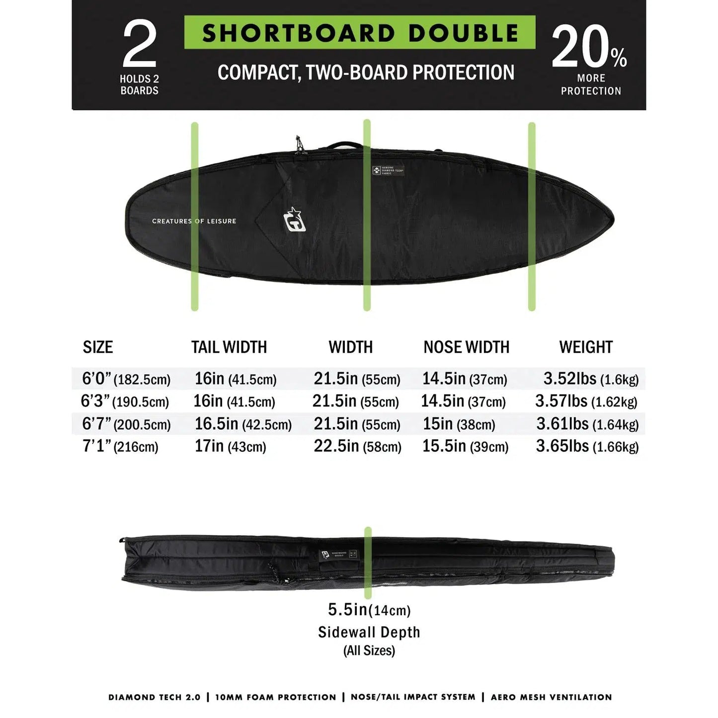 Designed for lightweight, compact travel. Our Double Covers fit your go-to board plus a back up in a streamlined shape that helps avoid excess baggage. 10mm FOAM and DIAMOND-TECH® materials add extra protection.